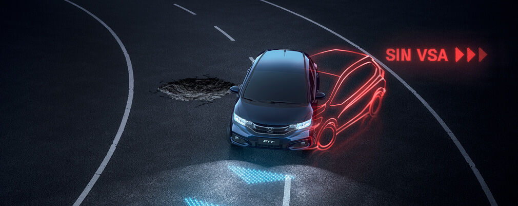 El FIT posee control de estabilidad VSA, que equilibra automáticamente la tracción y el frenado, de forma dinámica e independiente, garantizando absoluta seguridad en cualquier situación.